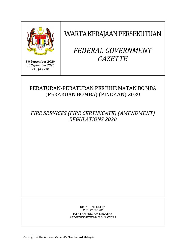 Akta Peraturan Bomba Seksyen Perakuan Bomba Pindaan 2020 Pdf